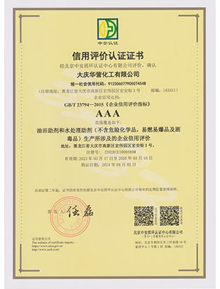 大慶華營(yíng)化工有限公司成立于2006年7月10日,注冊(cè)資金3300萬元,公司類型為有限責(zé)任公司。位于大慶高新技術(shù)產(chǎn)業(yè)開發(fā)區(qū)宏偉園區(qū),是一家集油田助劑產(chǎn)品的研發(fā)、生產(chǎn)、銷售和技術(shù)服務(wù)為一體的現(xiàn)代化高新技術(shù)企業(yè)。公司注重科技創(chuàng)新,公司擁有18項(xiàng)自主知識(shí)產(chǎn)權(quán)。企業(yè)承擔(dān)過國(guó)家火炬計(jì)劃重點(diǎn)項(xiàng)目、國(guó)家科技型中小企業(yè)創(chuàng)新項(xiàng)目等,2011年被科技部火炬高新技術(shù)產(chǎn)業(yè)開發(fā)中心評(píng)為國(guó)家火炬計(jì)劃重點(diǎn)高新技術(shù)企業(yè)。公司十余種產(chǎn)品獲得中國(guó)石油天然氣集團(tuán)公司產(chǎn)品質(zhì)量認(rèn)可證書,其中粘穩(wěn)型驅(qū)油劑獲國(guó)家火炬計(jì)劃重點(diǎn)項(xiàng)目證書。公司憑借多年對(duì)大慶油田及周邊油田地質(zhì)情況的研究,可針對(duì)各油田地層特點(diǎn)調(diào)整產(chǎn)品的配方,更好地發(fā)揮各類油田助劑的性能。